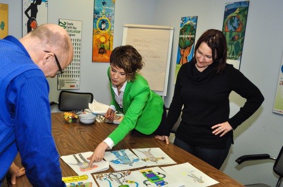 2) Searching through all the entries with Lindsay Bunce of Ecokids, and Orysia Boytchuk of Call2Recycle.